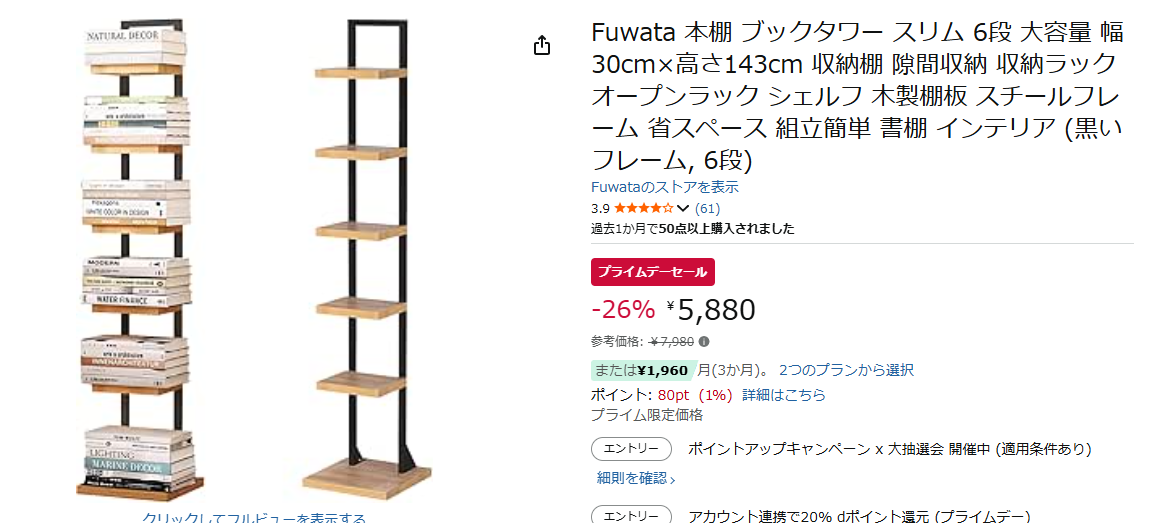 以前記事で紹介したブックタワーも、安くなっておりました。